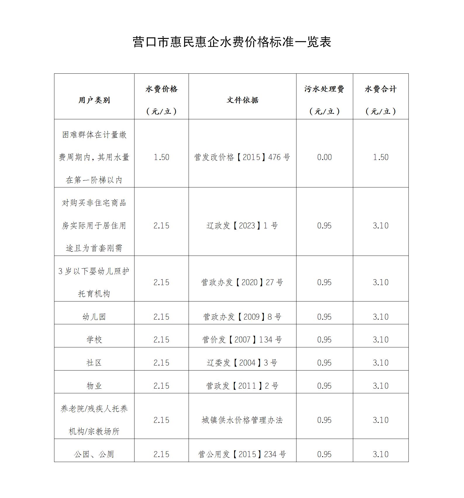 水費(fèi)標(biāo)準(zhǔn)