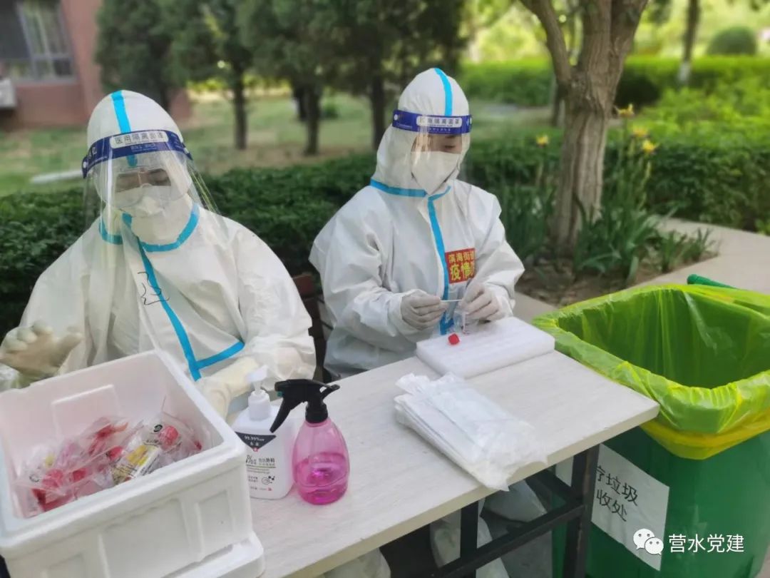 機關(guān)第三黨支部李紅(右)在保利香檳花園小區(qū)協(xié)助醫(yī)護人員核酸檢測