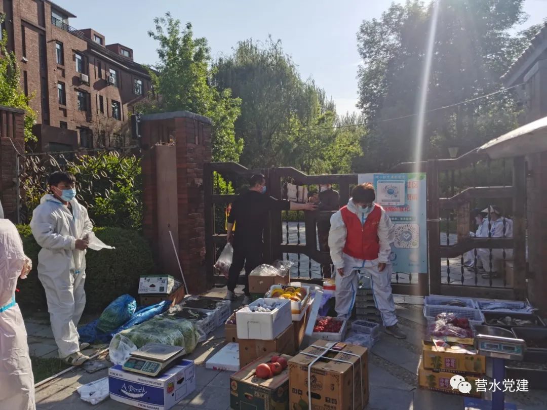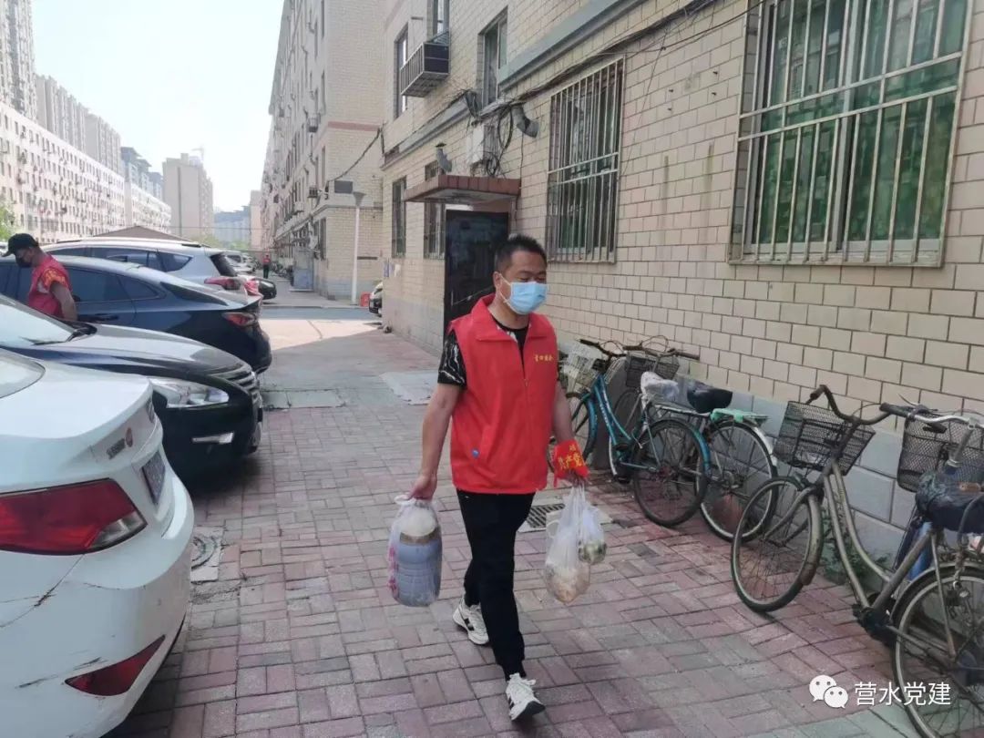 機關(guān)第一黨支部齊智強在書香庭院小區(qū)協(xié)助物業(yè)分發(fā)物資