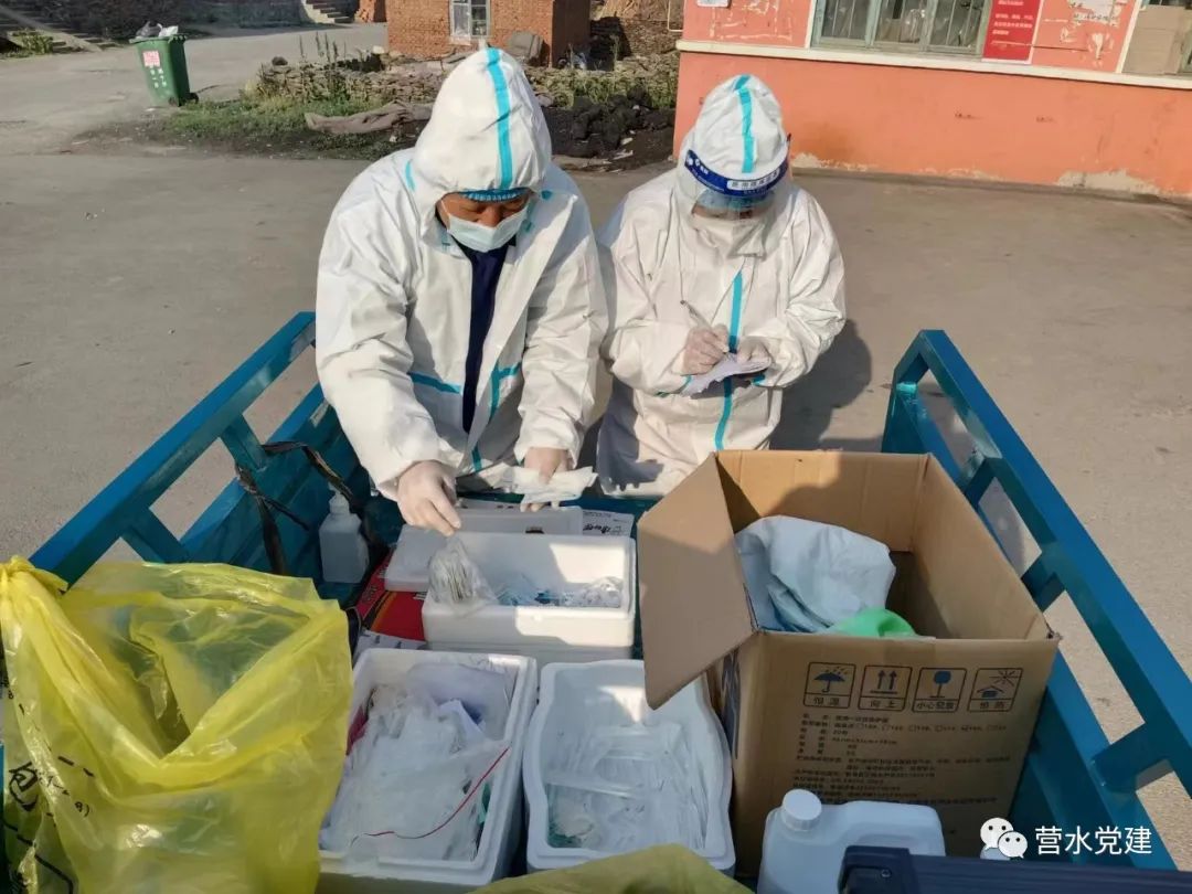 管網(wǎng)運維中心黨支部胡峰(左)協(xié)助醫(yī)護人員為居民進行核酸檢測