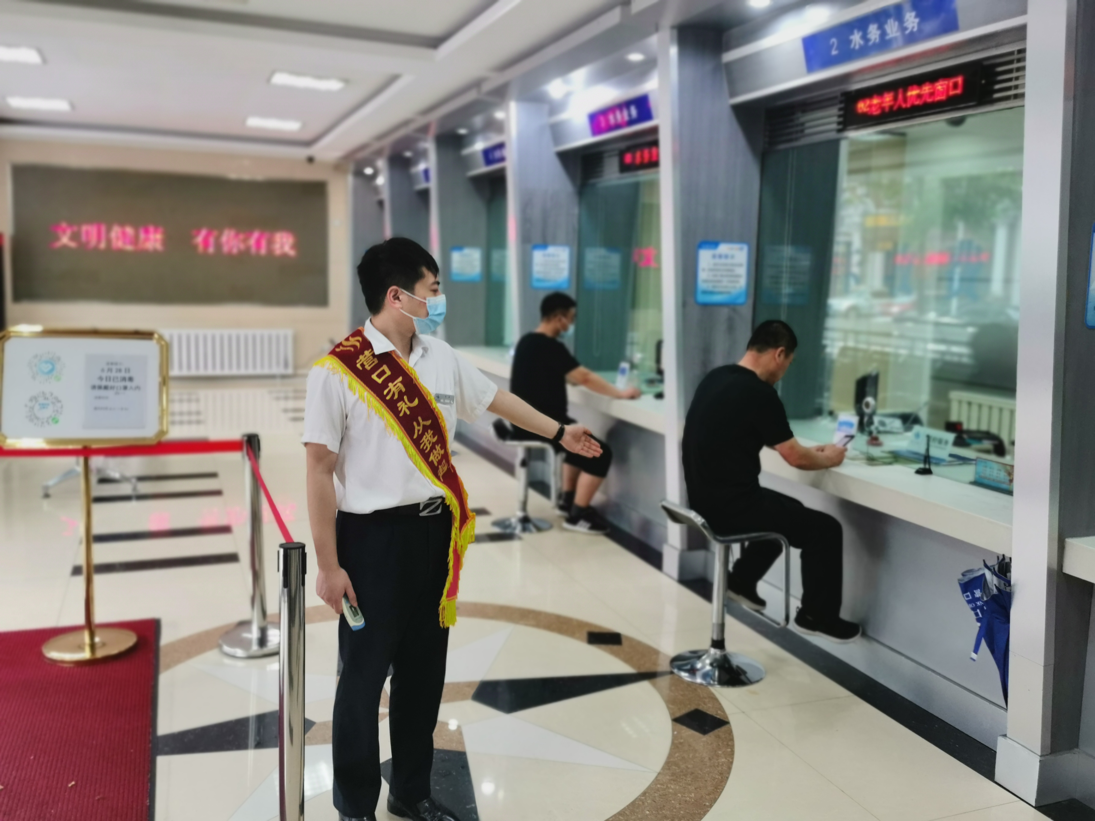 他發(fā)現(xiàn)來訪用戶總是忘戴口罩,其中以老年用戶居多。為了兼顧防控工作和廳內(nèi)業(yè)務(wù)的正常開展,他采取了靈活辦公方式。先請老年用戶在門口的一米線外等候,由他為用戶代繳水、燃氣、公交費和代為查詢。其中有一位大爺,腿腳不便拄著拐,忘記水費單號,十分焦急,他耐心詢問大爺?shù)男彰偷刂?,在抄表員的協(xié)助下,對照大爺身份證上的地址,查詢到水費信息并完成了交費。大爺?shù)淖优篮螅騺黼娫拰堖M及工作人員表示感謝。