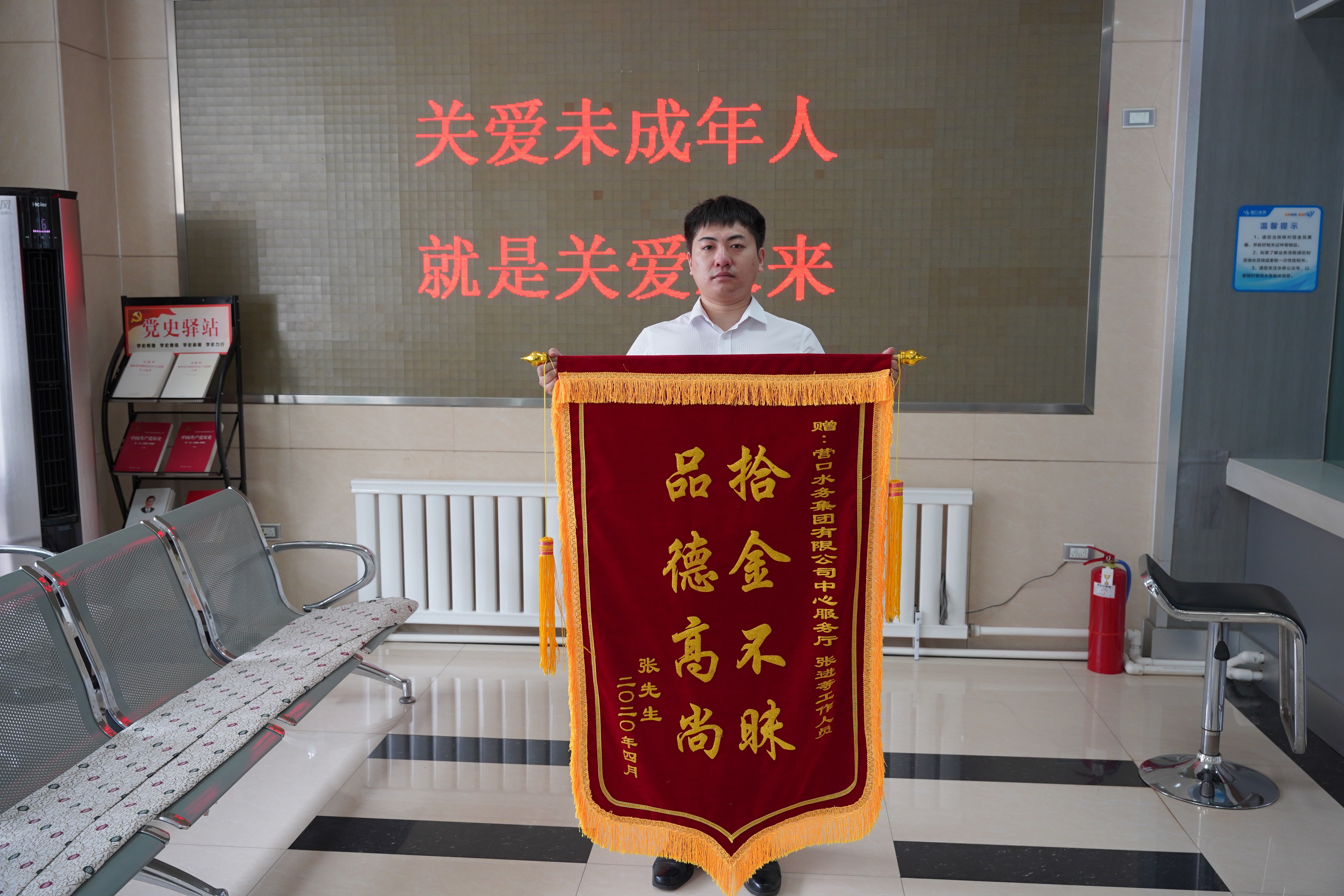 2020年4月,用戶張先生來到大廳辦理業(yè)務(wù),辦理結(jié)束后匆忙離廳時不小心將錢包遺落在廳內(nèi)的窗口柜臺。他發(fā)現(xiàn)后,馬上將撿到的身份證與疫情來訪用戶登記本進行核對,找到張先生的電話號碼,立刻與該用戶取得聯(lián)系,張先生返回后現(xiàn)場點驗,包內(nèi)大額現(xiàn)金、銀行卡及各類證件均保存完好,用戶十分感動,對他及廳內(nèi)的工作人員表示感謝后,并贈送給中心服務(wù)廳張進錦旗一面。