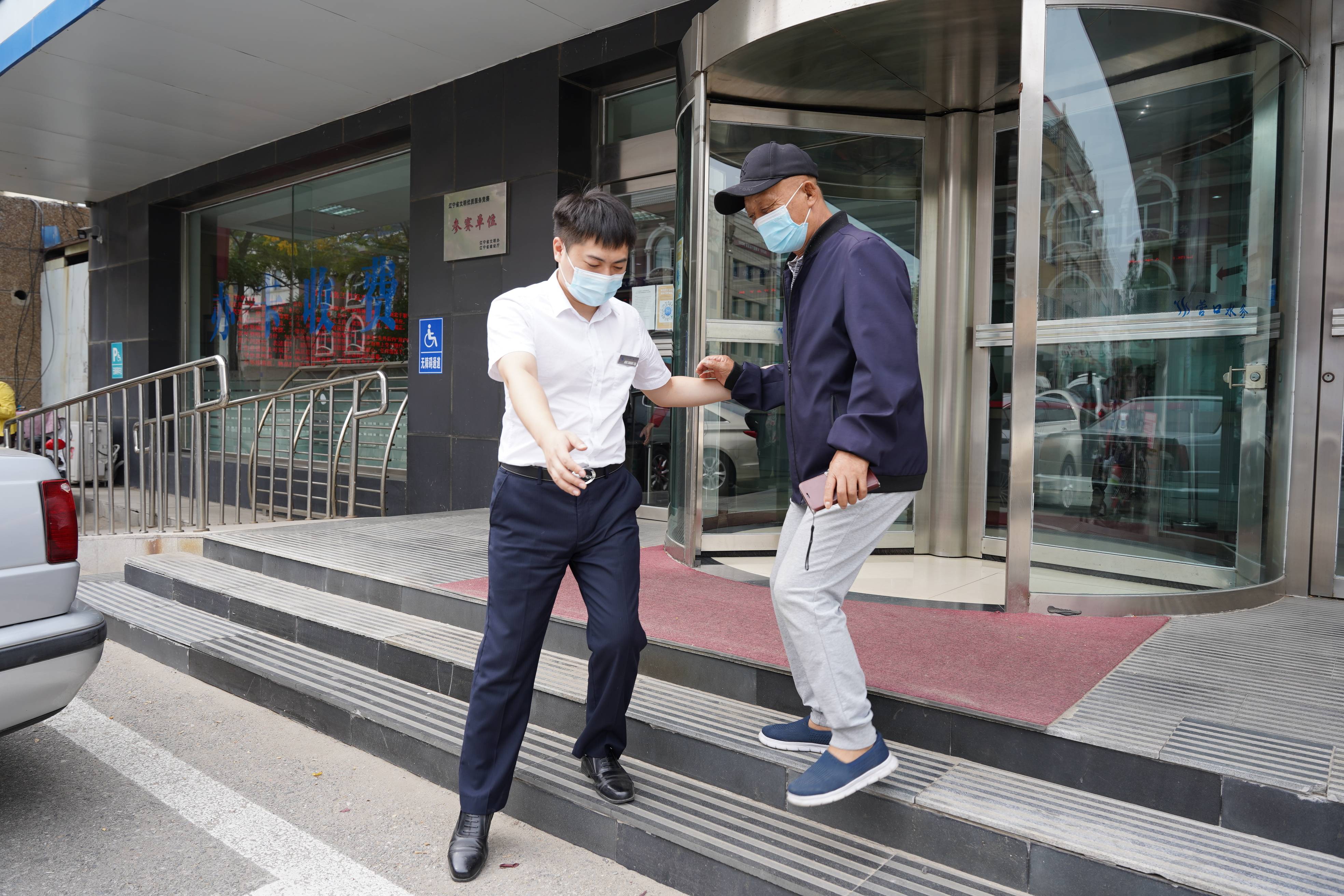 今年雷雨天氣頻繁,6月1日下午下起了大暴雨,一位盲人阿姨進到服務(wù)廳,他發(fā)現(xiàn)這位阿姨沒有帶傘身上已經(jīng)濕透。攙扶阿姨到窗口辦理業(yè)務(wù)后,經(jīng)過溝通得知,阿姨需要乘坐9路公交車回到住處。外面正下著大雨,阿姨的眼睛看不見,他十分擔心阿姨的安全,拿著雨傘扶著阿姨到公交站,待阿姨安全上車后他才離去。
