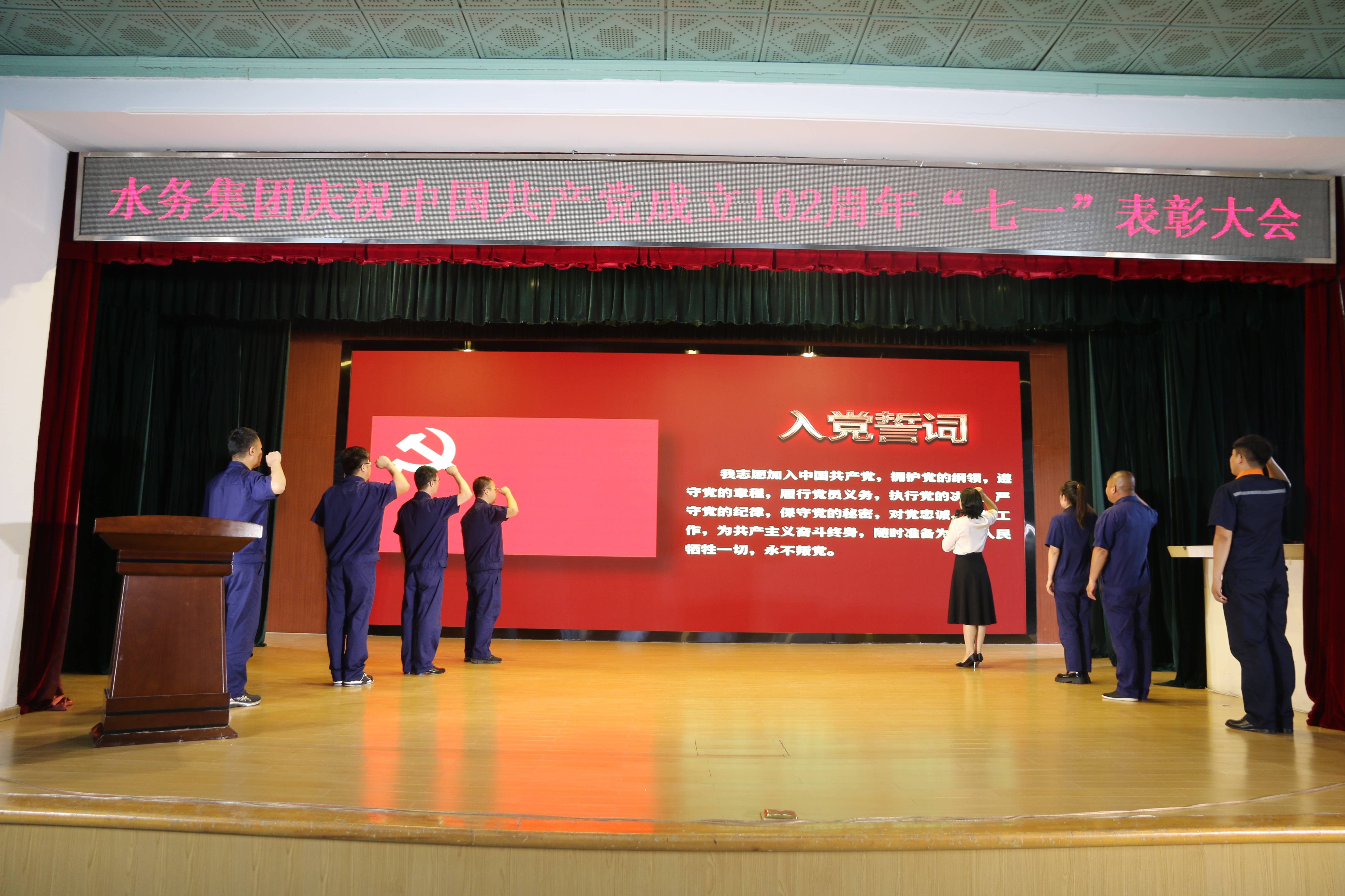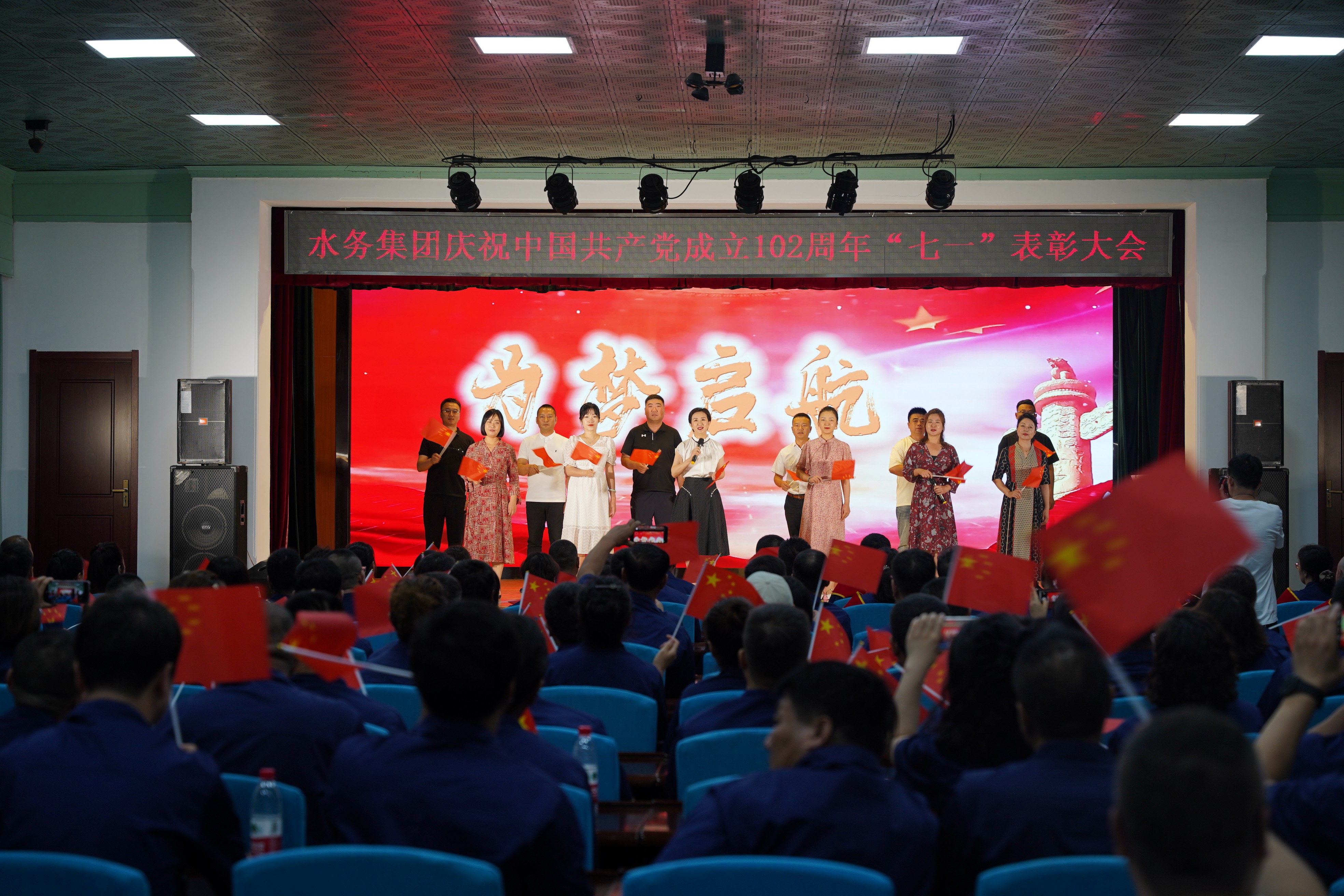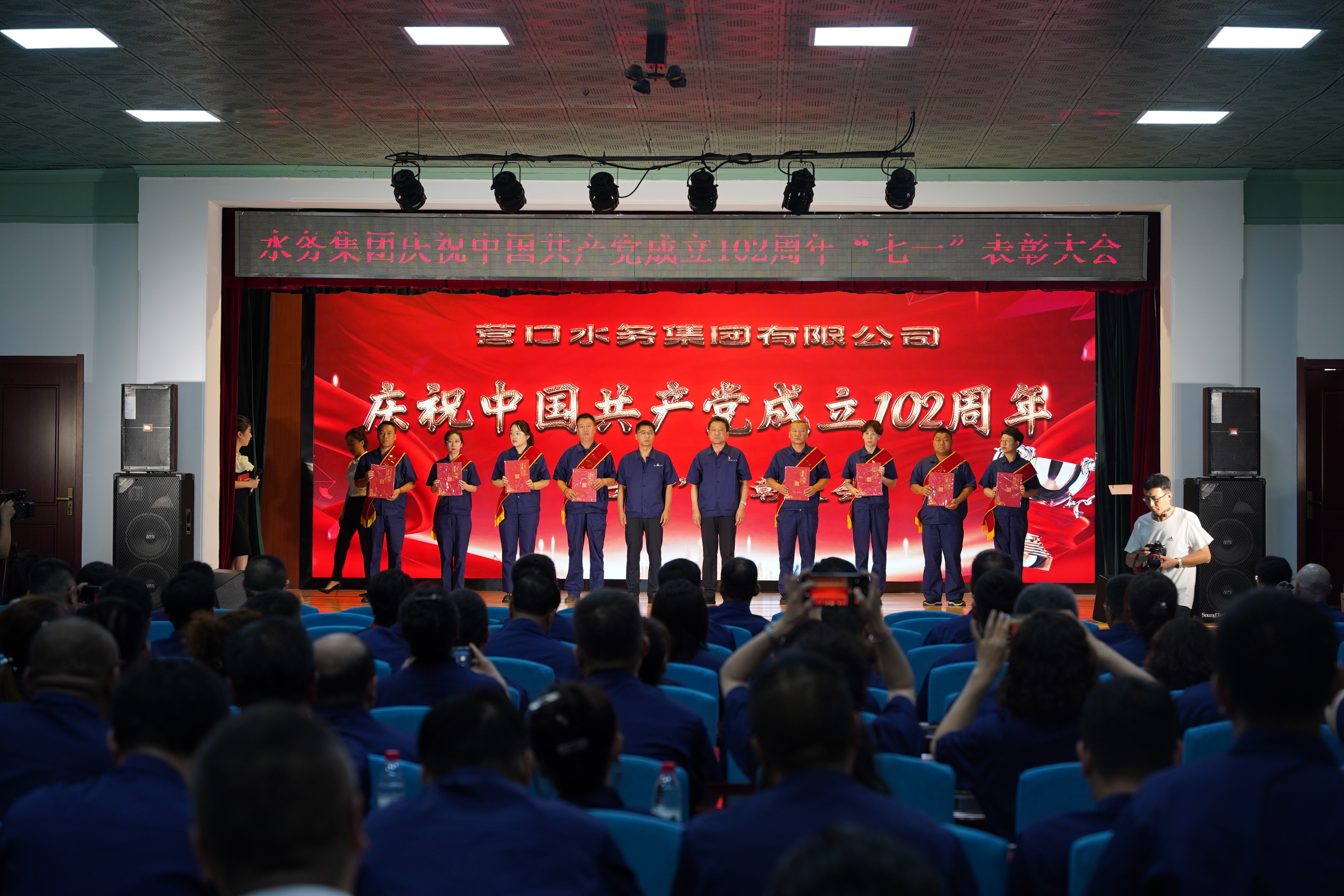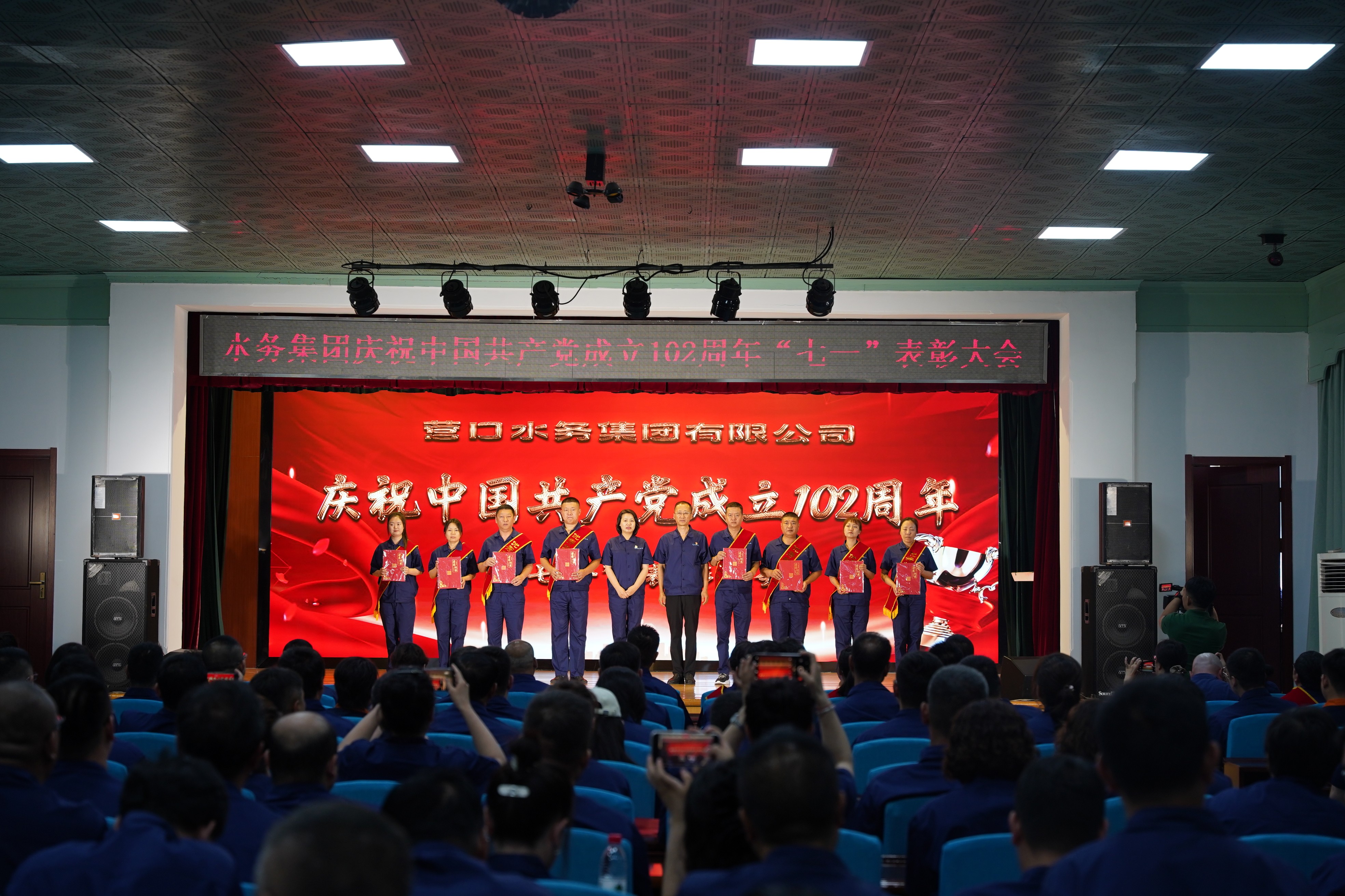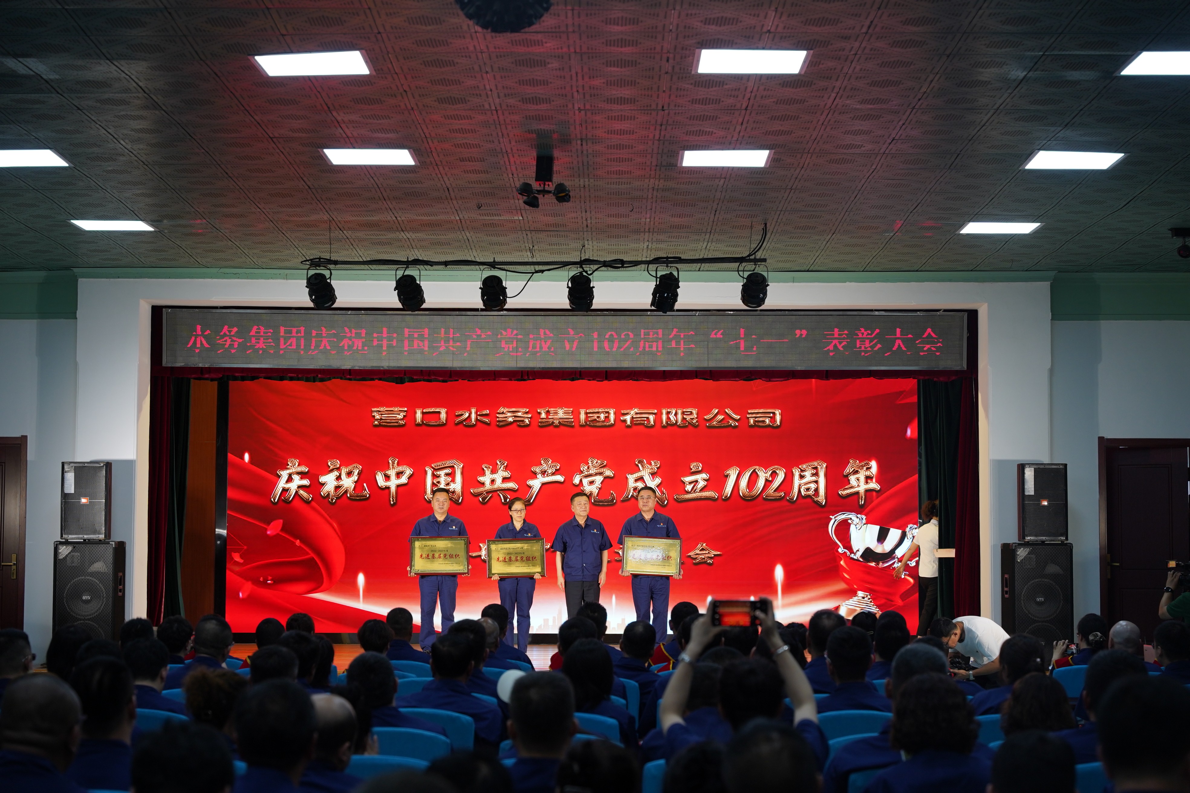 為熱烈慶祝中國共產(chǎn)黨成立102周年,深入貫徹落實(shí)黨的二十大精神,扎實(shí)推動(dòng)學(xué)習(xí)貫徹習(xí)近平新時(shí)代中國特色社會(huì)主義思想主題教育預(yù)熱升溫,6月28日下午,營口水務(wù)集團(tuán)隆重舉行慶祝中國共產(chǎn)黨成立102周年暨七一表彰大會(huì)。集團(tuán)領(lǐng)導(dǎo)班子成員、各黨支部書記,黨員、群眾代表、新黨員和積極分子200余人參會(huì)。