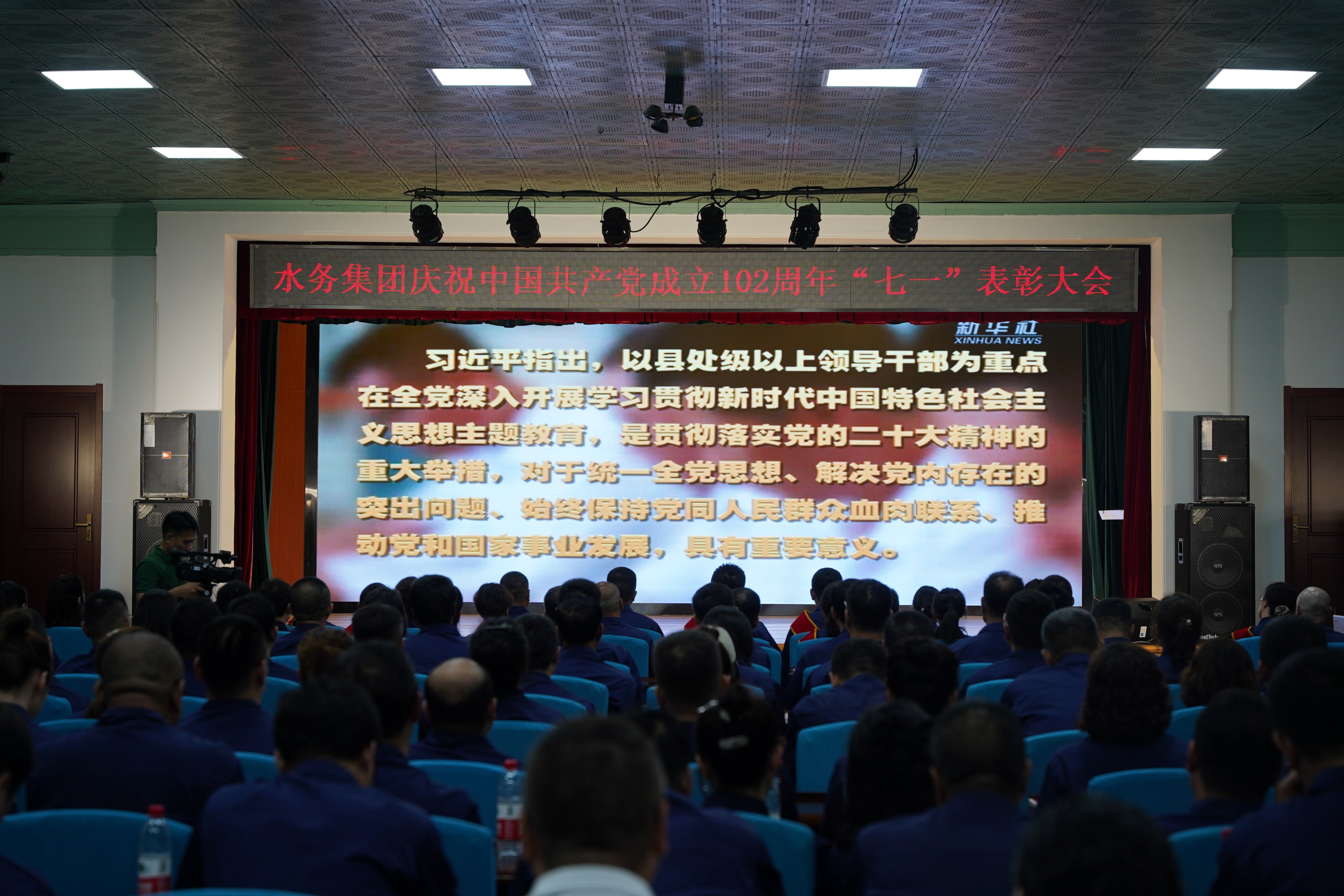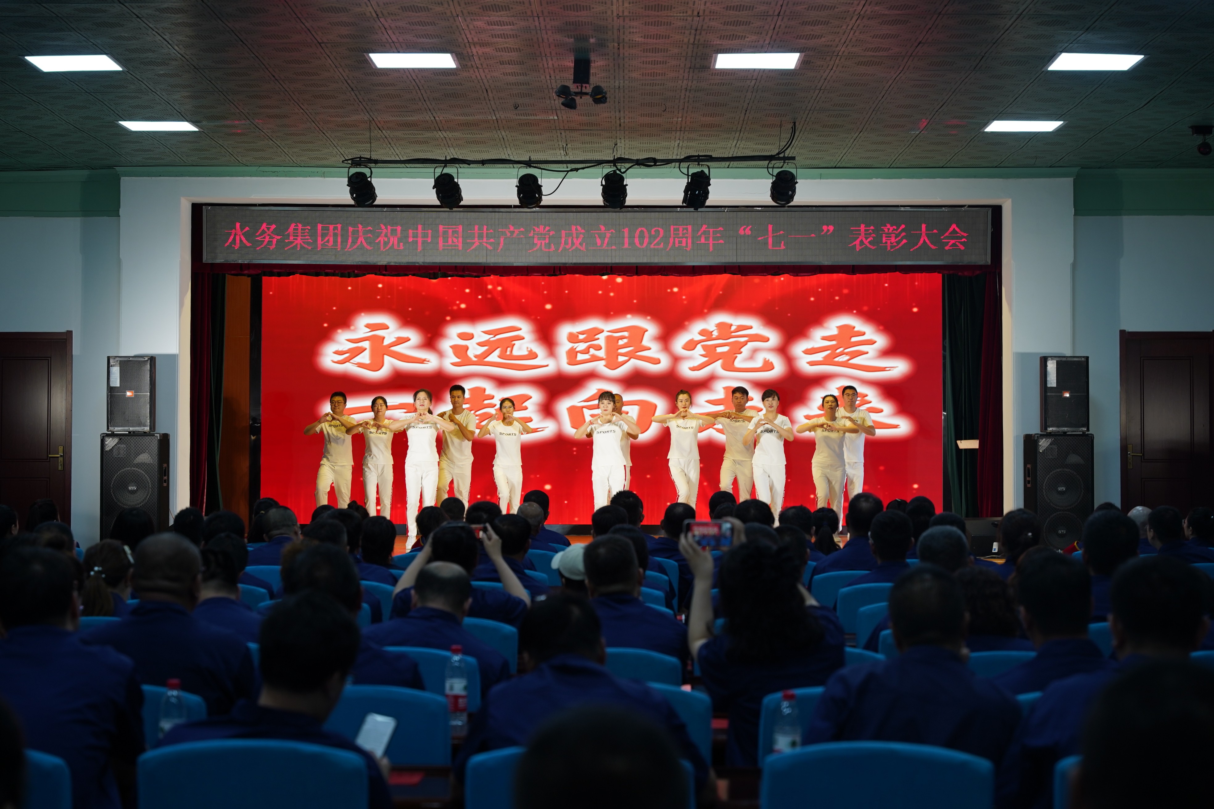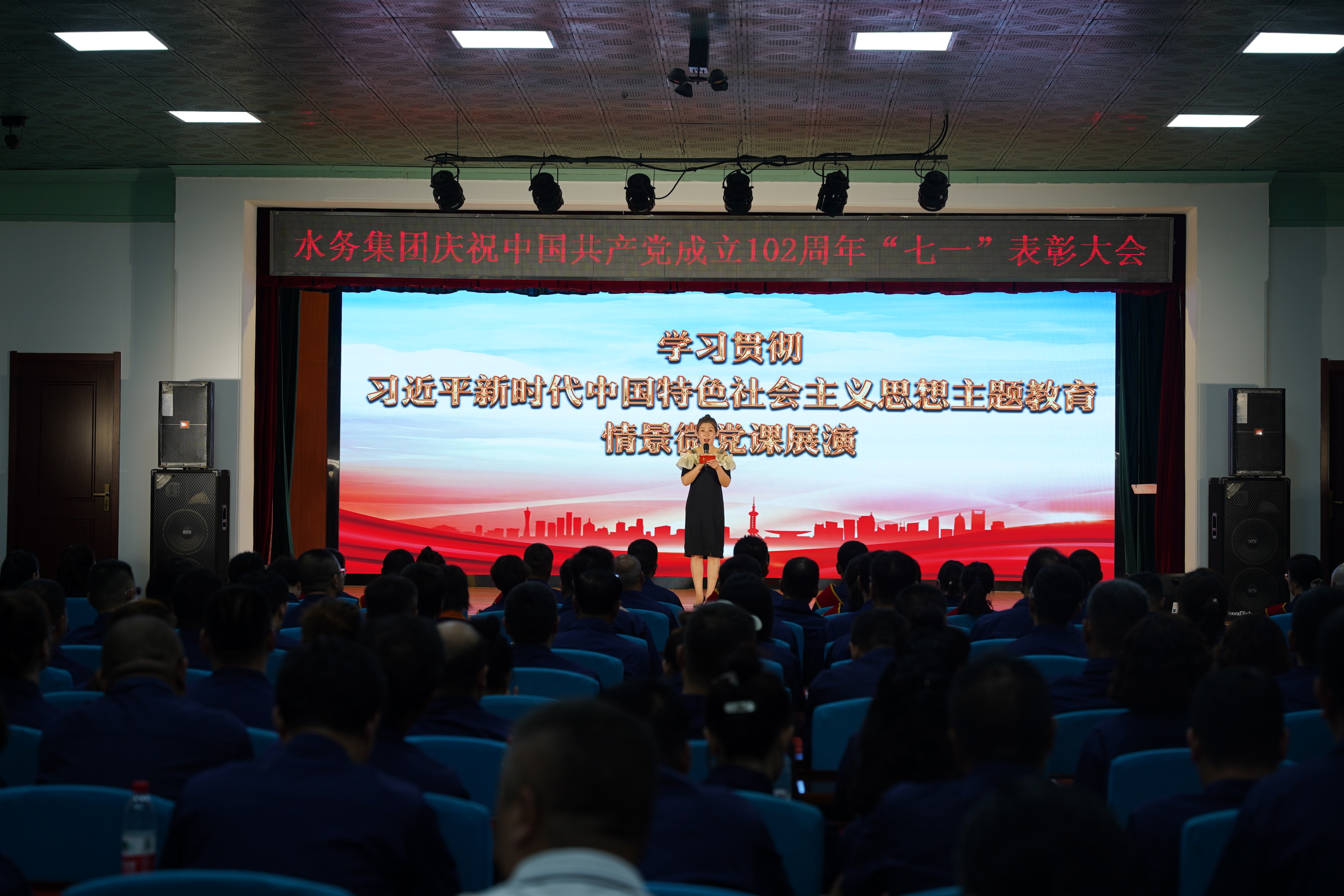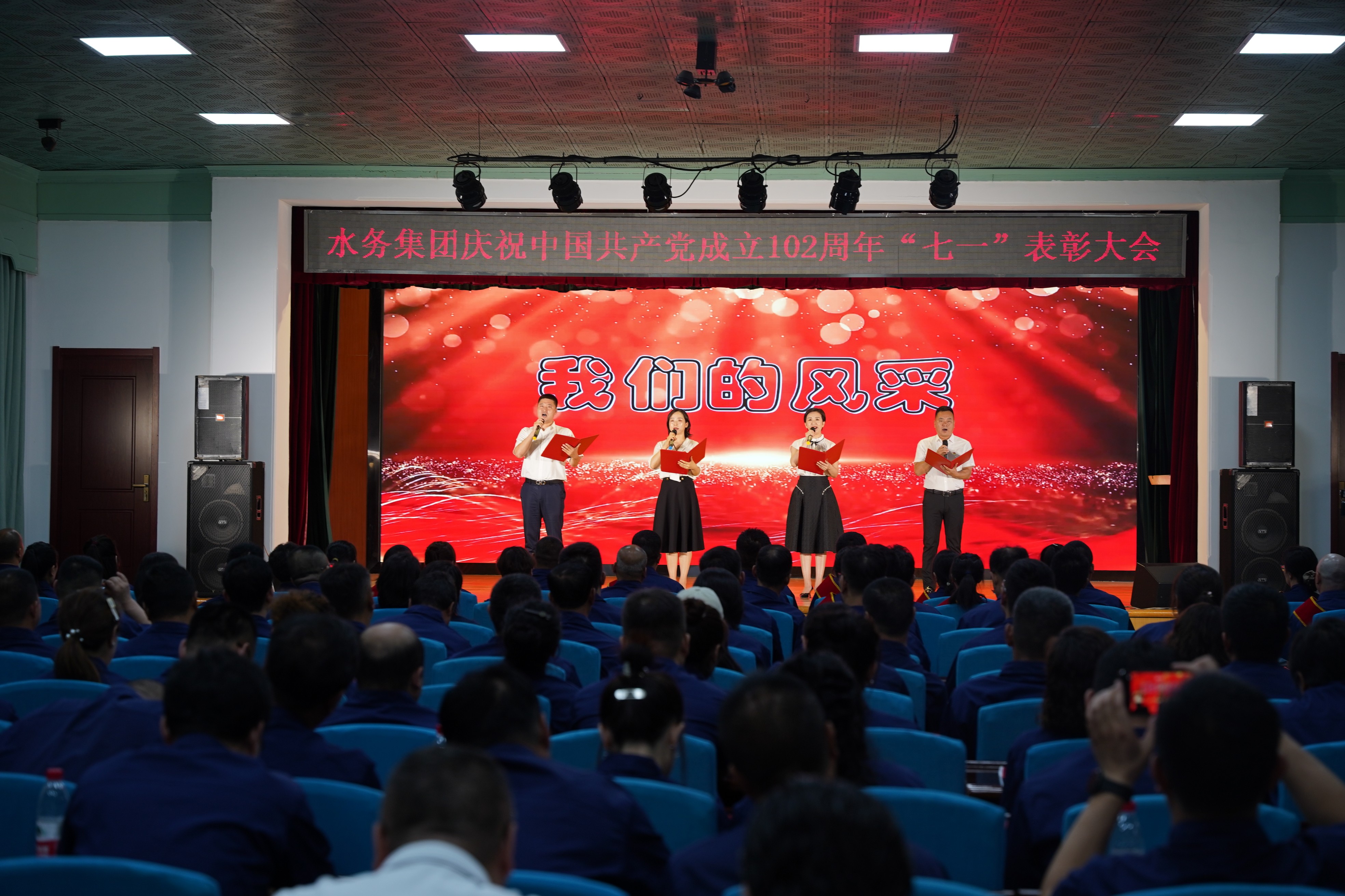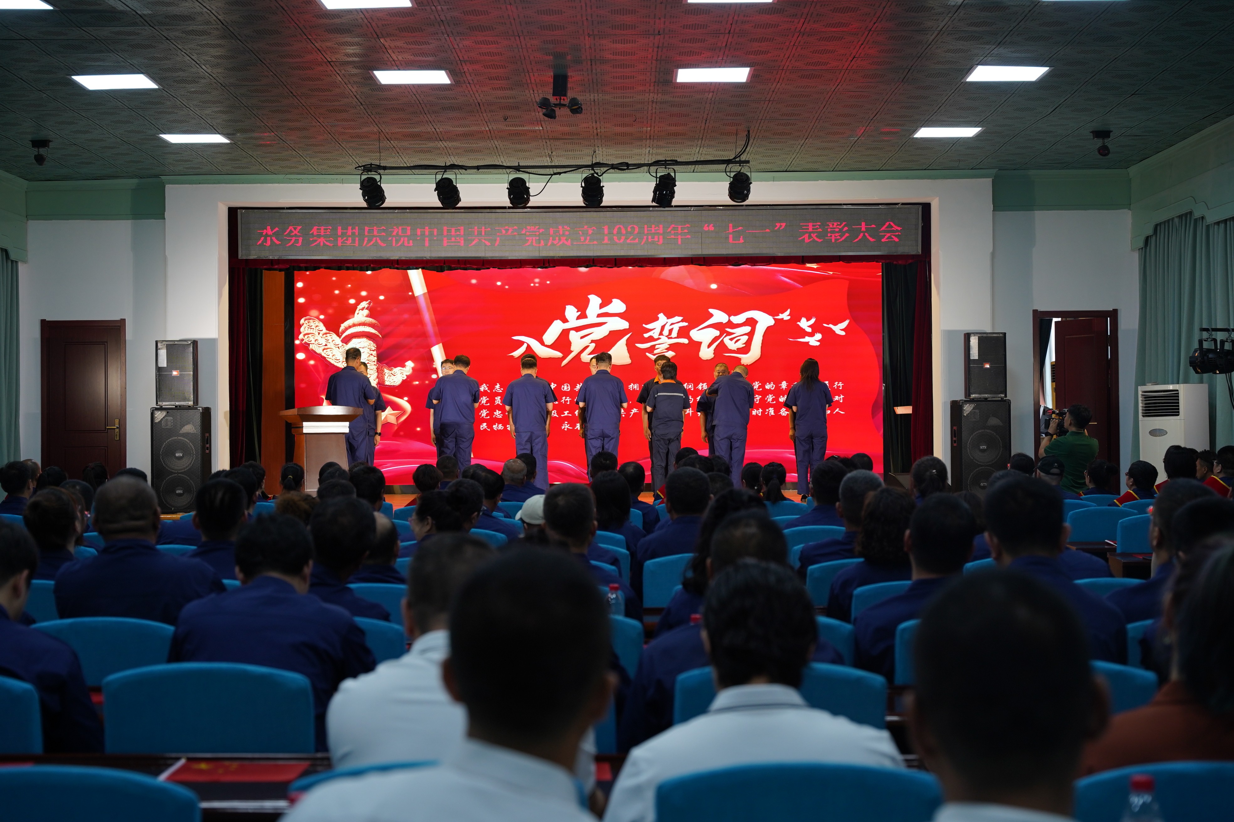 為熱烈慶祝中國共產(chǎn)黨成立102周年,深入貫徹落實(shí)黨的二十大精神,扎實(shí)推動(dòng)學(xué)習(xí)貫徹習(xí)近平新時(shí)代中國特色社會(huì)主義思想主題教育預(yù)熱升溫,6月28日下午,營口水務(wù)集團(tuán)隆重舉行慶祝中國共產(chǎn)黨成立102周年暨七一表彰大會(huì)。集團(tuán)領(lǐng)導(dǎo)班子成員、各黨支部書記,黨員、群眾代表、新黨員和積極分子200余人參會(huì)。