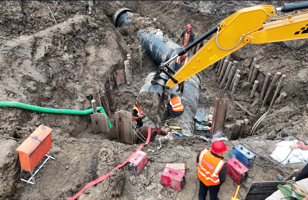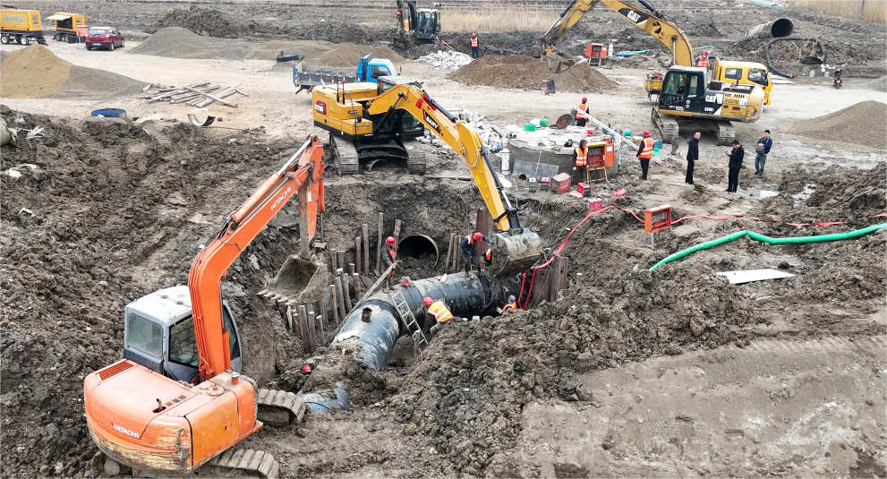 3月26日清晨6點(diǎn),維修作業(yè)準(zhǔn)時(shí)拉開帷幕。此次作業(yè)面臨著不小的挑戰(zhàn),待遷移的DN1400管線口徑大,且由玻璃鋼管與螺紋鋼管兩種不同材質(zhì)管材連接而成,這無疑增加了施工難度。尤其是在轉(zhuǎn)換件連接環(huán)節(jié),對(duì)口精確度的要求近乎苛刻,稍有偏差就可能導(dǎo)致膠圈翻折,影響供水安全。面對(duì)這一難題,經(jīng)驗(yàn)豐富的作業(yè)人員憑借精湛的技藝和高度的專注,嚴(yán)格把控每一個(gè)施工細(xì)節(jié)。