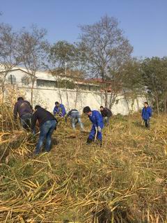 第五水廠是水務(wù)集團(tuán)較大的水廠之一,主要承擔(dān)西部工業(yè)水的運(yùn)行輸送工作。因地形特殊,清水池綠化帶、林木周邊、防護(hù)電網(wǎng)等許多位置不適合機(jī)械除草,約有4萬平方米的雜草需人工處理。10月14日下午13時(shí),水務(wù)集團(tuán)全體班子成員和來自機(jī)關(guān)部室、基層單位的240余名男職工戴著手套、拿著鐮刀,迅速地投入到事先分配好的20個勞動區(qū)域中開展勞動。水廠院內(nèi)地上的雜草以蘆葦和蒿草為主,足有一人多高,已被秋風(fēng)吹得干枯發(fā)黃,不易清除。領(lǐng)導(dǎo)班子成員身先士卒,帶頭示范,鼓舞了志愿者們的志氣,許多志愿者的手上都磨出了水泡或被雜草劃傷,但是大家毫無怨言,發(fā)揚(yáng)特別能吃苦、特別能戰(zhàn)斗的精神,忍痛堅(jiān)持到了最后。經(jīng)過全體志愿者的共同努力,經(jīng)過4小時(shí)連續(xù)奮戰(zhàn),4萬平方米的雜草全面清除干凈,同時(shí)對雜草中的白色垃圾進(jìn)行了集中清理,廠區(qū)環(huán)境衛(wèi)生得到了明顯改善。看著清潔衛(wèi)生的水廠,志愿者們的心里洋溢著自豪感和成就感,同時(shí)也享受到了勞動的光榮與快樂。