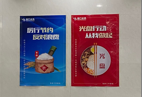 強化就餐管理,引領節(jié)約時尚。水務集團通過規(guī)范食堂就餐行為、改善就餐環(huán)境等形式,引導廣大干部員工牢固樹立勤儉節(jié)約的思想意識,養(yǎng)成良好節(jié)約習慣。為營造節(jié)約用餐良好環(huán)境和氛圍,集團公司在食堂醒目位置張貼“光盤行動、文明用餐”宣傳海報,按照就餐人數(shù)及各時段就餐人流量分析,采取勤備少盛、多次補餐等措施,用餐后提倡“人走盤光”,全方位減少餐飲浪費,使勤儉節(jié)約的行為習慣蔚然成風。