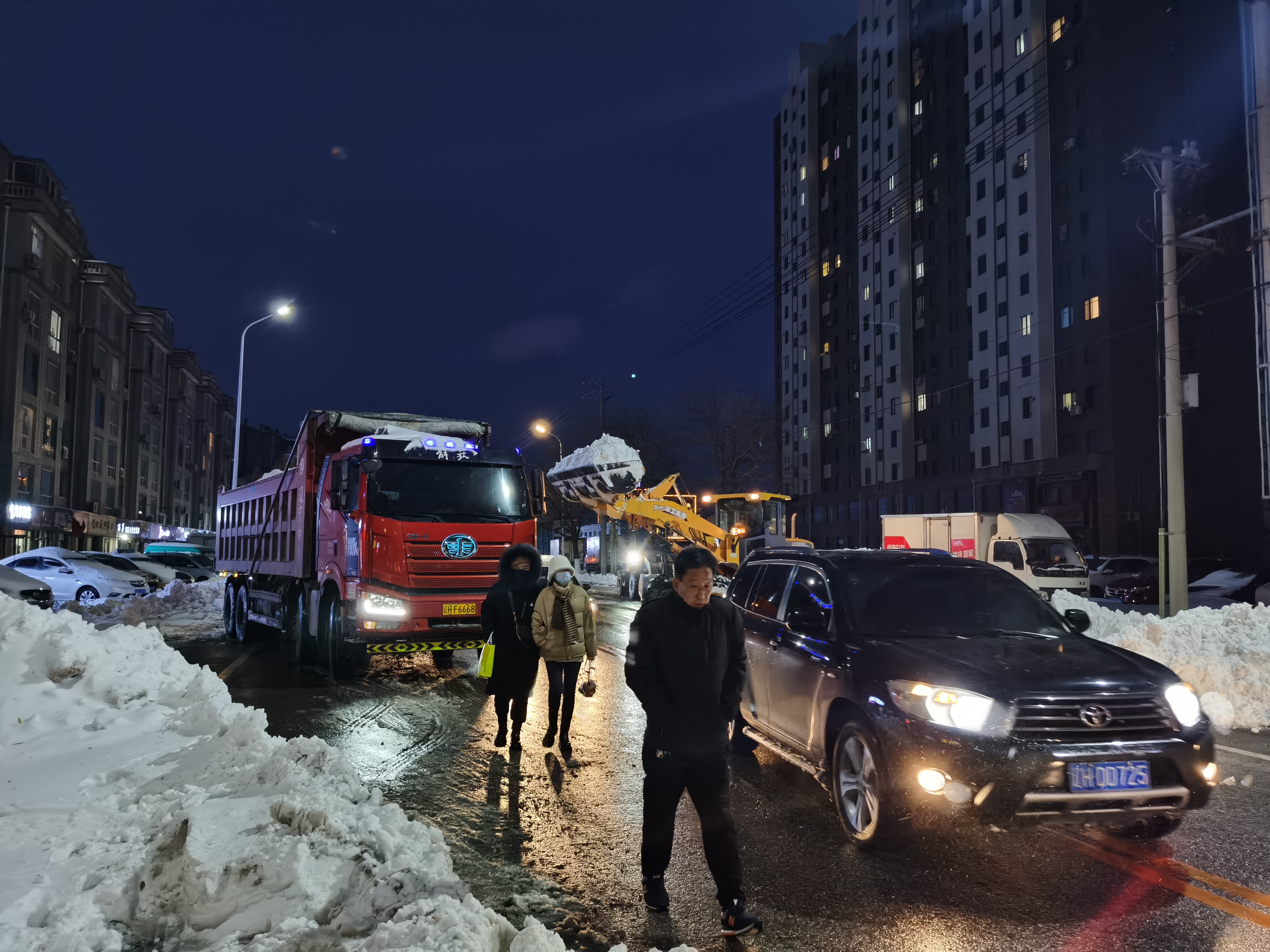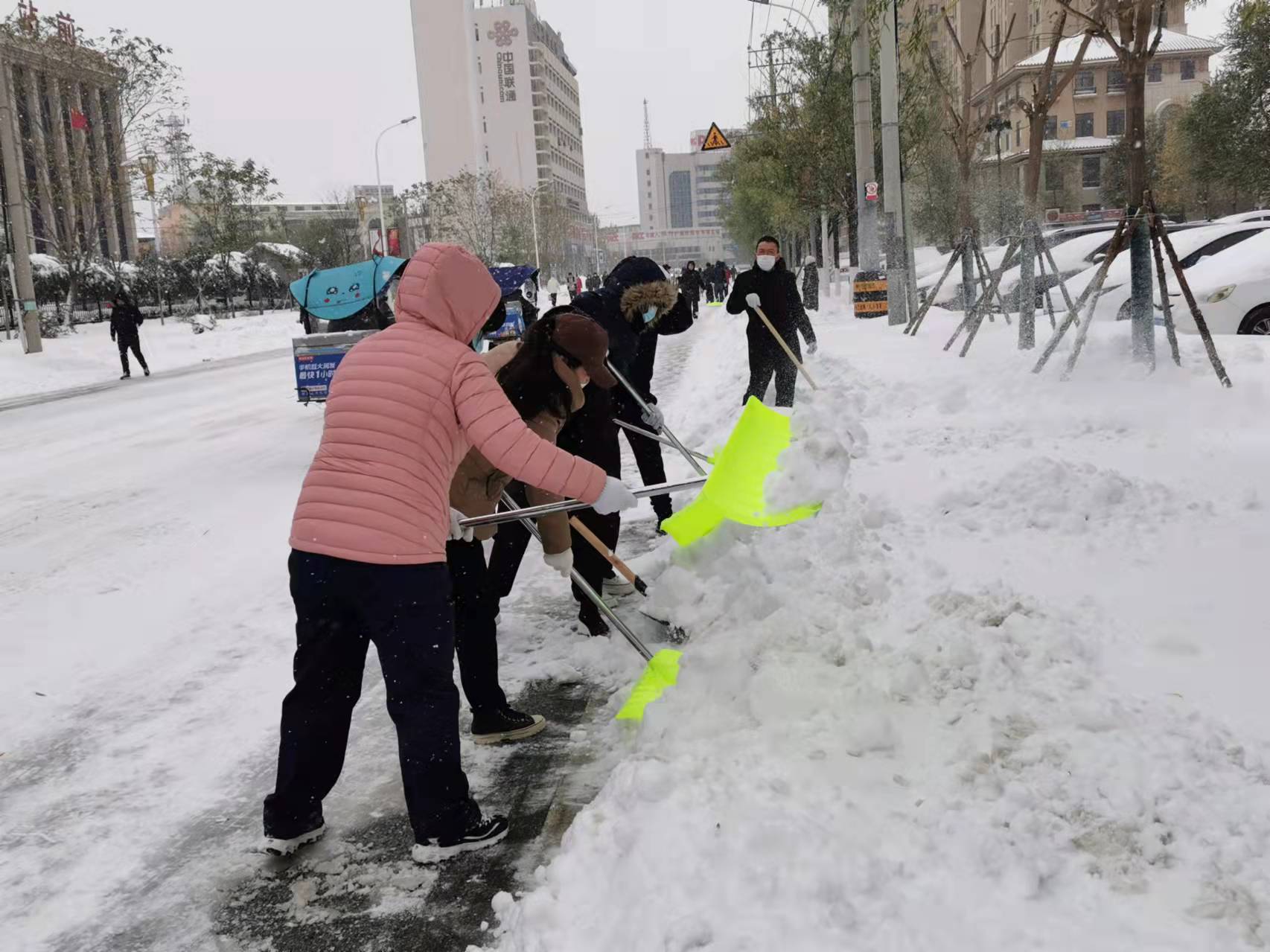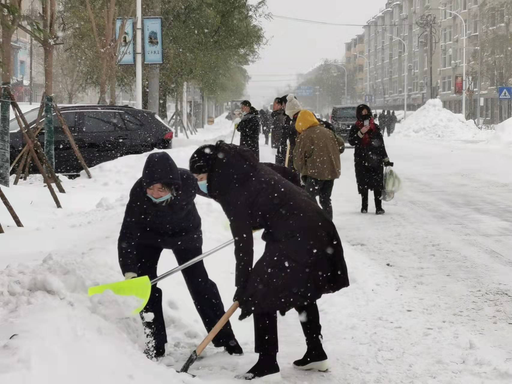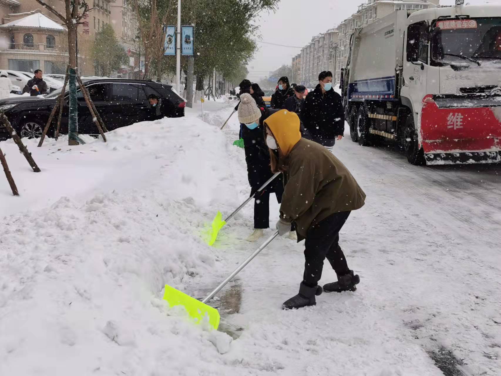 不懼嚴(yán)寒,頂雪前行。11月8日清晨,水務(wù)集團(tuán)黨委書記、董事長張業(yè)維親臨現(xiàn)場指揮除雪,集團(tuán)出動(dòng)鏟車12臺(tái),卡車24輛,挖掘機(jī)1臺(tái),4支除雪突擊隊(duì)分成20多個(gè)除雪小組,從新興大街西環(huán)路口到東新路路口,每間隔30米都能看到水務(wù)職工忙碌的身影,大家不畏嚴(yán)寒,埋頭苦干,不停揮舞手中的除雪鍬,冒雪前進(jìn),做到邊下邊清不間斷除雪。